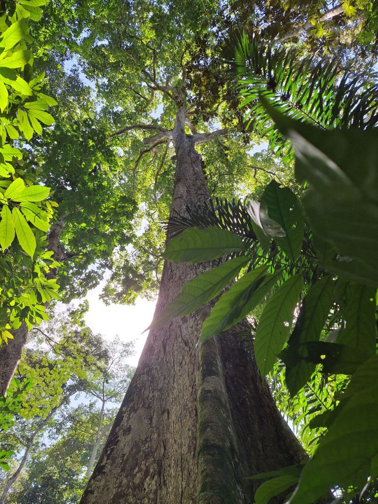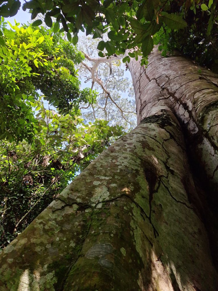 In Bezug auf die Beobachtung von Tieren in komplett freier Wildbahn hatten wir diesmal leider weniger Glück, dennoch konnte mir Arend einige besondere Landmarken des Regenwaldes zeigen, bspw. einen Dabéma-Baum, der nur in dieser Gegend in Zentralafrika rund um Kamerun, Kongo und Gabun vorkommt.