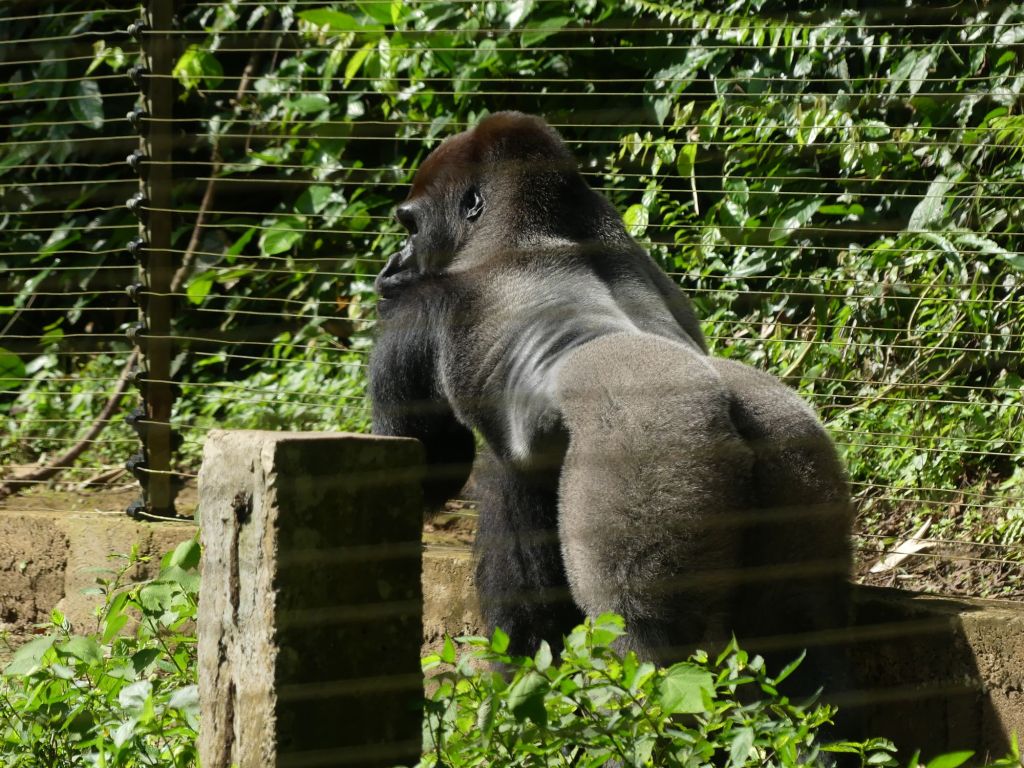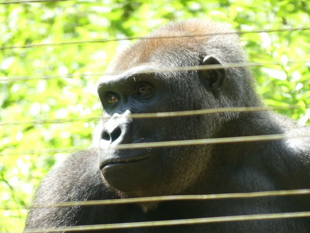 Bald ging es dann auch schon zum ersten Gorilla-Gehege. Nach kurzer Wartezeit zeigten sich die westlichen Flachlandgorillas inklusive des mächtigen, männliches Silberrücken-Gorillas als dominanter Anführer der Gruppe. Erstaunlich, dass diese mächtigen Primaten wohl sehr friedlich sind, trotz ihrer herausragenden Kraft.