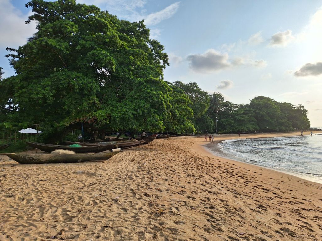 Ich war relativ entspannt und nutzte die Pause zur Vernichtung meiner Nudelreste vom Vorabend in der Tupperdose, während die anderen Mitreisenden verhandelten. Schließlich ließ man uns sogar ohne Zahlung passieren – nochmal gut gegangen. Ohne weitere Hindernisse kamen wir gegen halb 11 nach insgesamt etwas über 4 1/2 Stunden Fahrt am Ziel an der kamerunischen Küste bei Kribi an. Ja, für Autofahrten muss man in Kamerun definitiv Zeit haben. Auch, weil manche Straßen dann doch akut von Schlaglöchern durchsät sind.