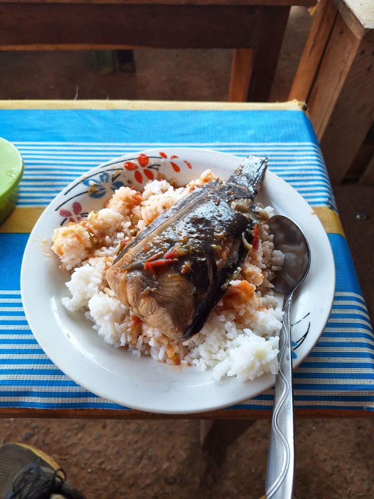 Am späteren Abend luden uns schließlich noch die Einheimischen ein, in ihrem Kreise ihr traditionelles Essen zu verköstigen. In dem Fall wieder Reis mit Fisch oder Fleisch. Leider waren wir durch das Omelette jedoch bereits satt und lehnten ab, ehe wir uns schlafen legten.