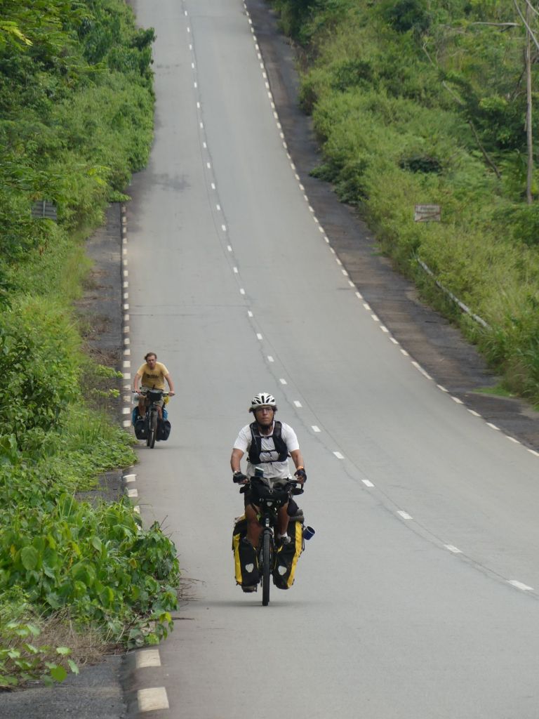 Sehr müde nach der von Moskitos und Hitze geprägten Nacht in Sangmelima, schafften wir es schließlich am späten Vormittag wieder auf unsere Räder, um Strecke zu machen in Richtung Republik Kongo. Eine Konstante blieb auch bei Weiterfahrt: Das hügelig-anspruchsvolle Streckenprofil.