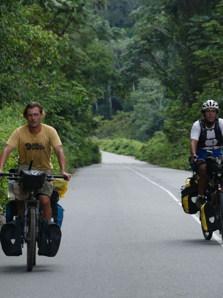 Den Vormittag verbrachten wir dann mit fertig gepackten Fahrrädern damit, den Regen auszuharren und auf Besserung zu hoffen. Es sich jedoch ganz schön in die Länge – erst um kurz vor 13 Uhr wurde der Regen schließlich weniger. Nach den ersten Kilometern bei leichtem Niesel und einer kurzen Mahlzeit am Straßenrand war es schließlich trocken und wir durften uns der Fortsetzung der Dschungel-Achterbahnfahrt widmen.