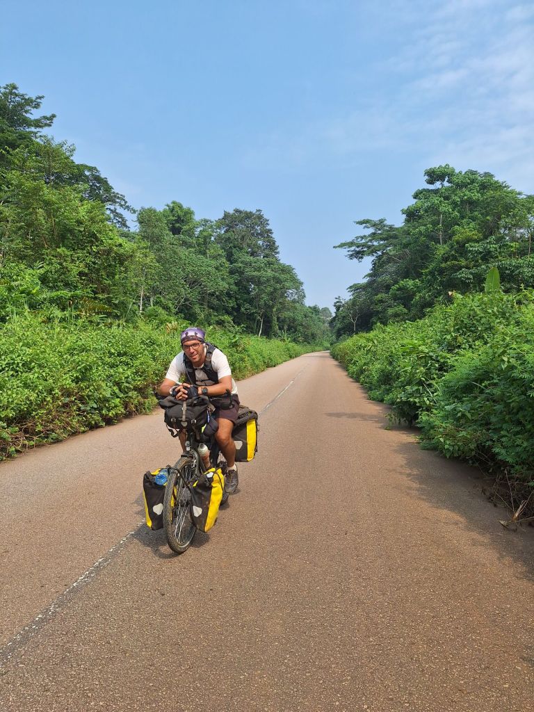 Außerdem trafen wir noch ein französisches Paar, das mit seinem Camper durch ganz Afrika fährt. Sie erzählten uns ihre Pläne. Auch jenen, den Dzanga-Ndoki Nationalpark von der Stadt Ouesso aus zu besuchen im Dreiländereck mit Kamerun und der zentralafrikanischen Republik, wo man allerlei Schimpansen und Gorillas sehen kann – das müssen wir uns definitiv auch überlegen. Zudem gaben sie uns eine große Flasche Wasser – sie waren für uns gewissermaßen die Retter in der Not nach 100 Kilometern Fahrradfahren quasi ohne Pause.