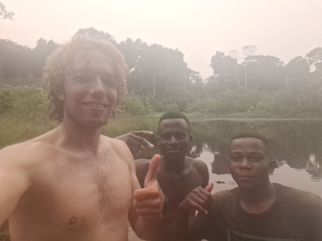 Nach all der Anstrengung mit den vielen Höhenmetern musste es fast sein: Einmal Dusche unter dem herrlich erfrischenden Wasserfall – zumal ich seit Yaoundé, also fast zwei Wochen, eigentlich keine richtige Dusche mehr genommen habe. Man fühlt sich direkt wie neu geboren.