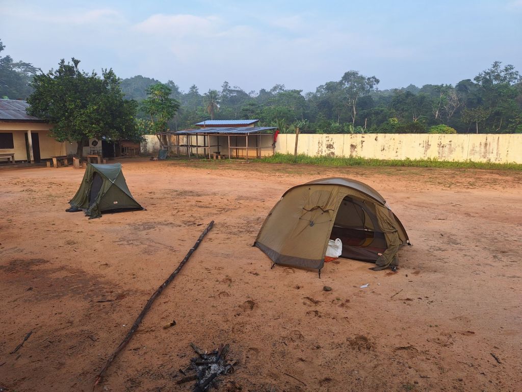 Da es hier sowieso auch keinen Internetempfang gab, gab’s eine Portion Haferflocken und danach wurde sich direkt schlafen gelegt. Der Plan für den nächsten Tag war ambitioniert: So weit kommen wie nur möglich durch das hügelige Gelände, und dann am nächsten Tag den Rest bis Ouesso bestreiten.