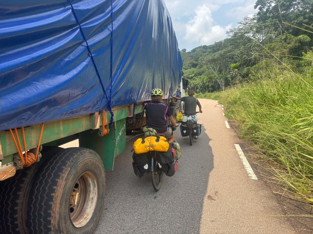 Hinzu kam, dass sich der erste Teil der 60 Kilometer durchaus zog. Es glich weiterhin einer Achterbahnfahrt: Auf, Ab, Auf, Ab. Bis auf wenige, verarmte Dörfer gab’s nichts. Keine Verpflegung, gar nichts. Nur Dschungellandschaft – die grüne Hölle!