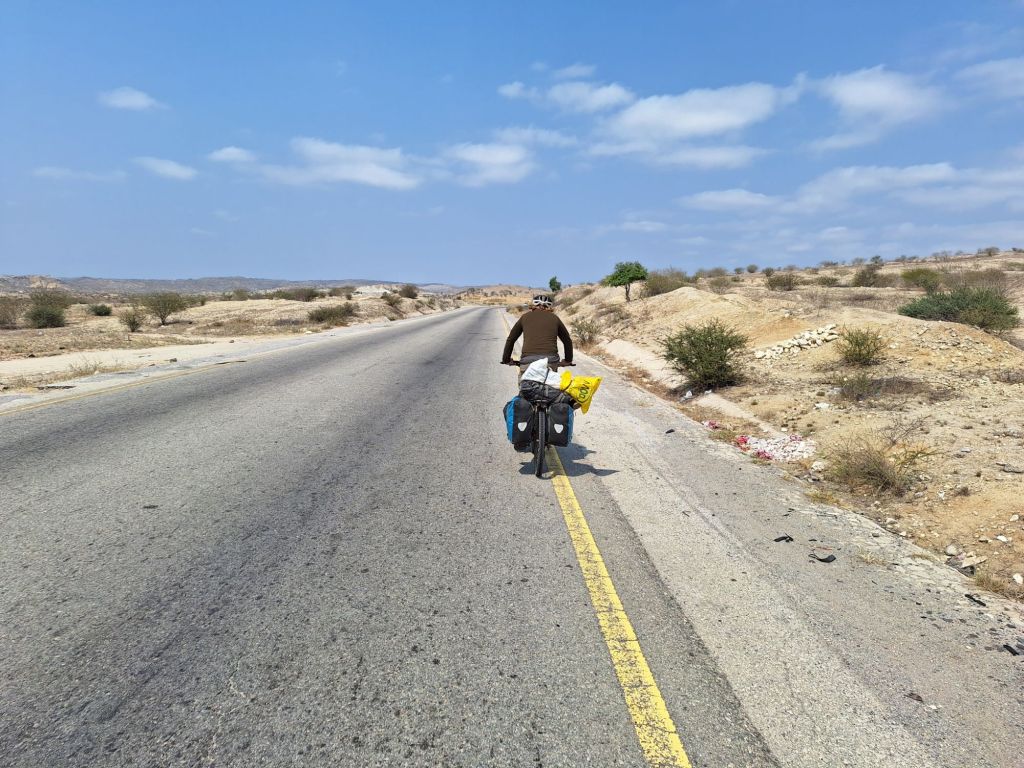 Nachdem einem entspannten Morgenkaffee beim Hotelrestaurant, dem Wiedersehen mit Omar im Ort sowie einem 2. Frühstück ging’s schließlich richtig los. Erst durch eine lange Baustelle, anschließend langsam ansteigend bei immer noch beeindruckender, weitläufiger Landschaft.