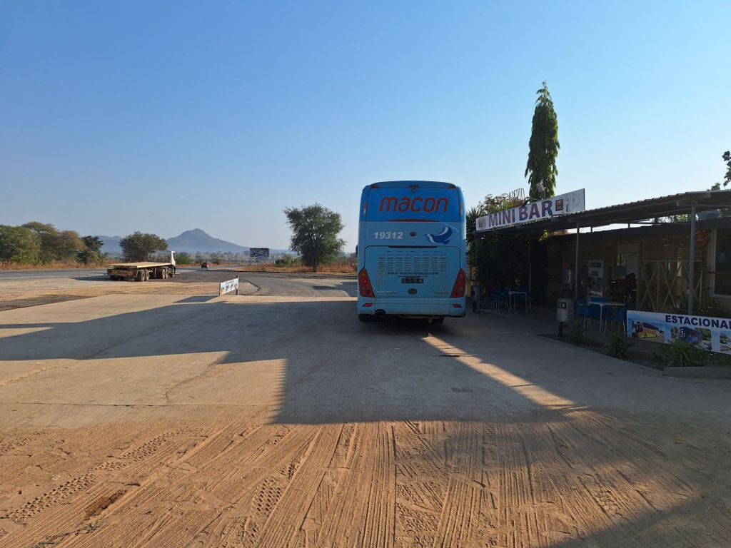Nach dem letzten Hügel tauchte die ersehnte Tanke dann aber endlich auf in einer sehr belebten Umgebung mit Markt gegenüber. Ich war skeptisch bezüglich der Sicherheit, doch an einem Platz ums Eck im eingezäunten Bereich und mit Security, die eine Schusswaffe am Körper trug, fühlte ich mich doch sicher. Zudem wurde der Zeltaufbau vom Chef der Tanke ohne Probleme genehmigt. Ein sehr netter Zeitgenosse, der sogar etwas Englisch konnte.