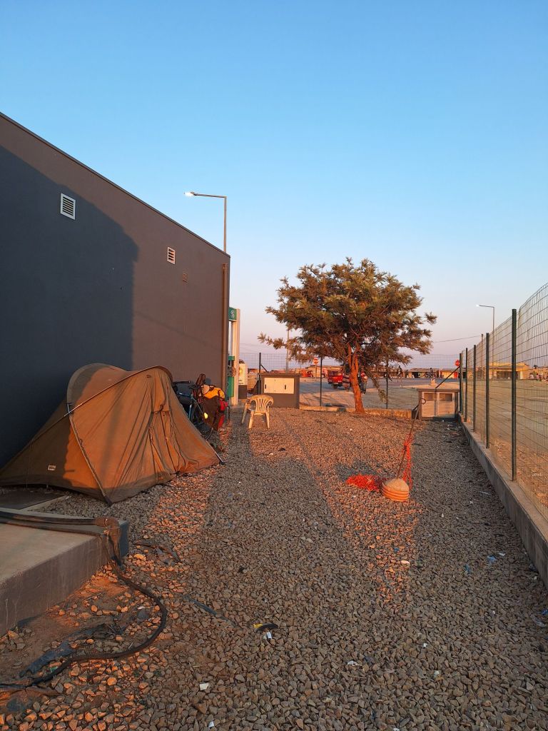 Nach einer letzten Softdrinkpause sowie dem Einkauf von Brot hier im angolanischen Nirgendwo in den Bergen fuhren wir noch vier Kilometer weiter zu einer einsamen Tankstelle mit weitläufigem Gelände – nach Rücksprache durften wir nun problemlos unser Zelt aufstellen hier auf knapp 600 Metern Seehöhe. 120 Kilometer und 1.100 Höhenmeter vorher waren wir heute früh noch an der Küste – verrückt.