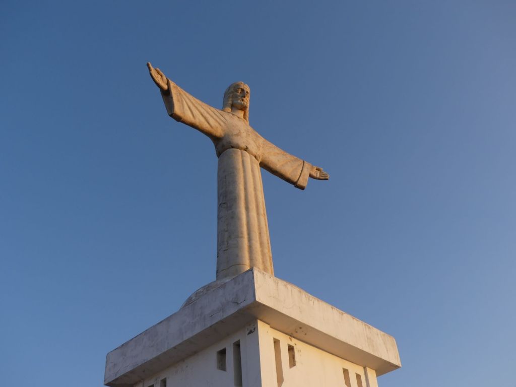 Schließlich hatten wir Eile, da wir noch zum Sonnenuntergang oben bei dem „Lubango“-Schriftzug sein wollten. Hier thront, ähnlich wie in Rio de Janeiro auf dem Zuckerhut, auch eine Christus-Statue, die „Cristo Rei“.