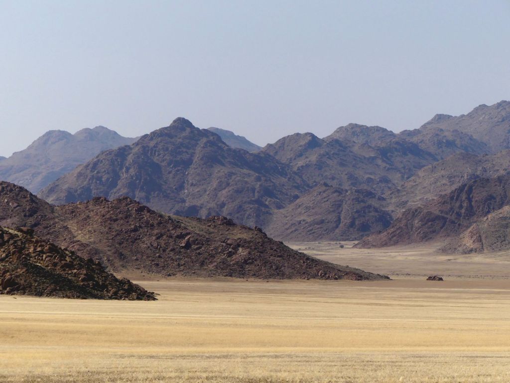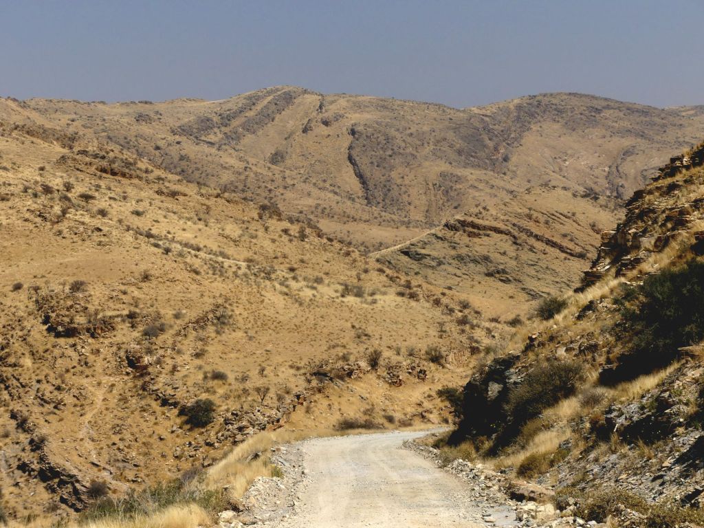 Begleitet von den Berggestalten der westlichen Ausläufer des Namib-Naukluft-Parks schraubte sich die Straße in atemberaubender Szenerie in die Höhe bis auf knapp 1.600 Meter, ehe es durch einige ausgetrocknete Flussbetten Richtung Südwesten wieder abwärts ging. In so mancher Passage waren wir doch über den 4×4-Mietwagen froh. Auch ohne das Fahrrad ein wahres Abenteuer. Natürlich mit weniger Schweiß- und Kalorienverbrauch. Aber einmal kann man es sich ja gönnen 😉