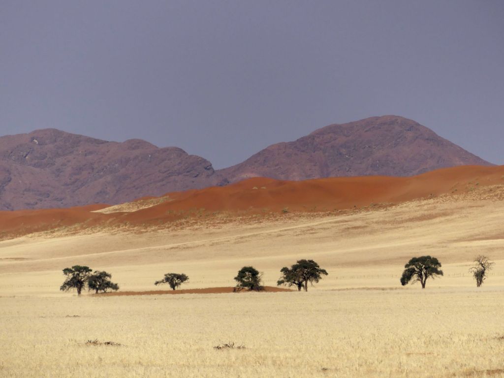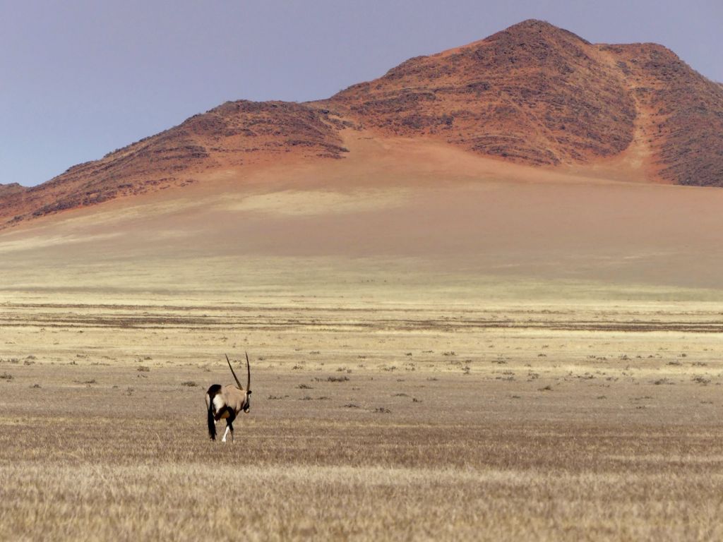 Die Straße stellt quasi die Grenze zwischen zwei unterschiedlichen Landschaften dar. Linkerhand erheben sich die Tirasberge, während rechterhand die farbenprächtigen Ausläufer so mancher Dünen der Namib-Wüste zu bewundern sind. Die ein oder andere Oryx-Antilope, die sich links und rechts in der Nähe der Straße verirrte, machte die fast kitschigen Eindrücke perfekt.