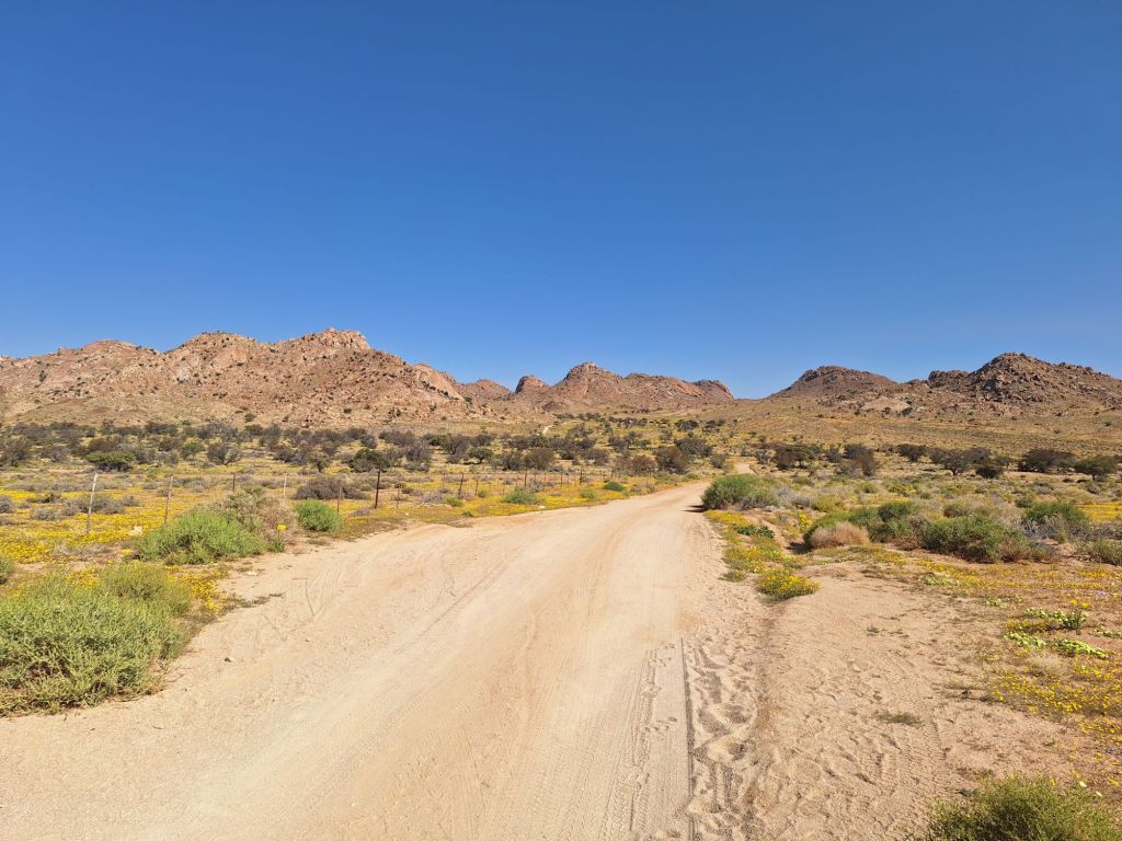 Nach dem Pass ging es noch einige Zeit weiter durch beeindruckende Berglandschaften, stellenweise im absoluten Nirgendwo. Als Radfahrer muss man hier auf jeden Fall gut planen. Bemerkenswert an Namibia sind jedoch auch die abrupten Veränderungen der Landschaft. Aus bergiger Kulisse wurde auf einmal weitläufige, farbenfrohe Wüstenlandschaft, mal mehr auf Schotter, mal auch durch stellenweise tieferen Sand.