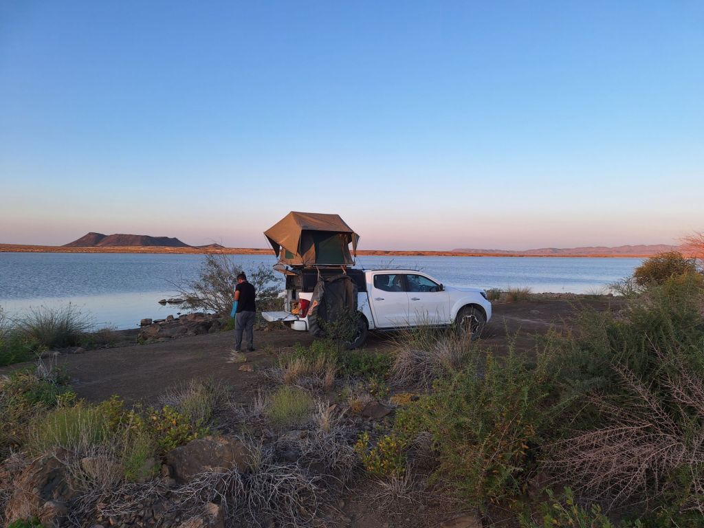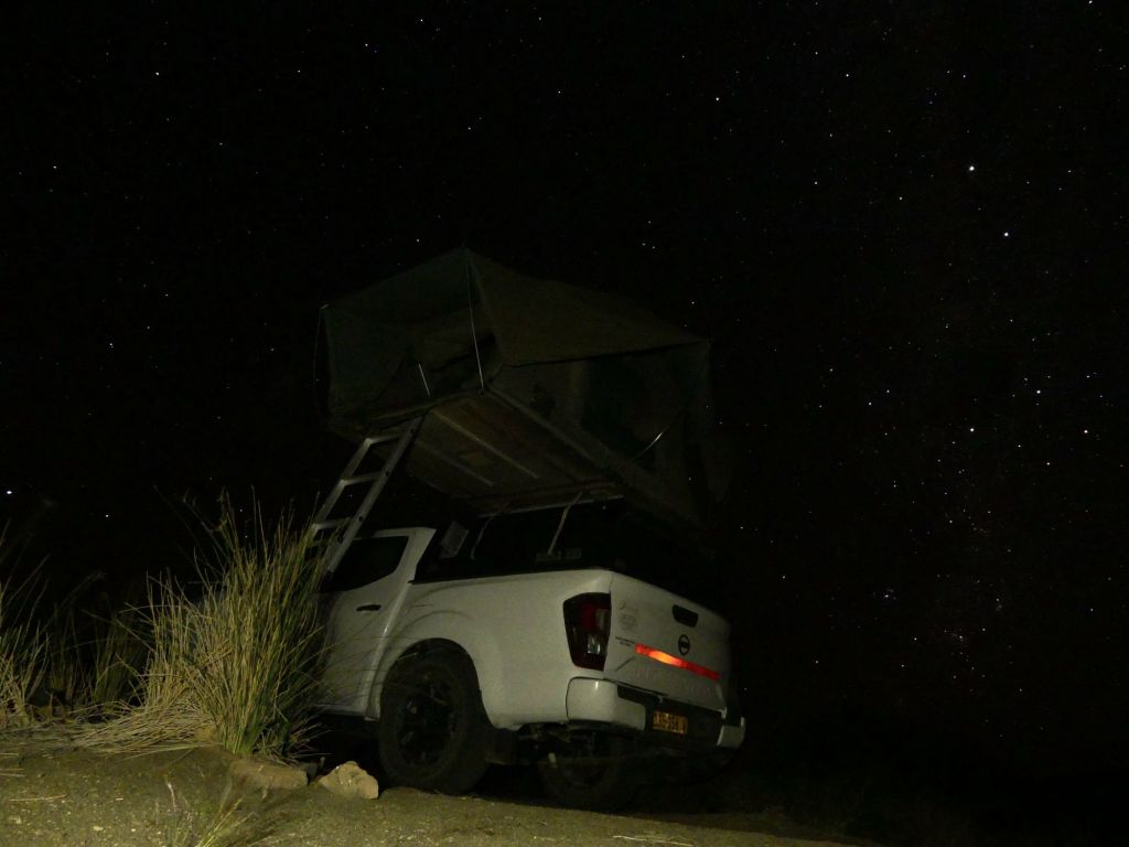 Viel passierte dann auch nicht mehr. Nach dem ereignisreichen Tag waren wir froh über Ruhe und Erholung, ehe es am nächsten Tag nach einer Nacht im Dachzelt wieder losging. Einmal in Rehobooth volltanken und dann ging es ab auf die Gravelstraßen. Ziel war der Remhoogte Pass.