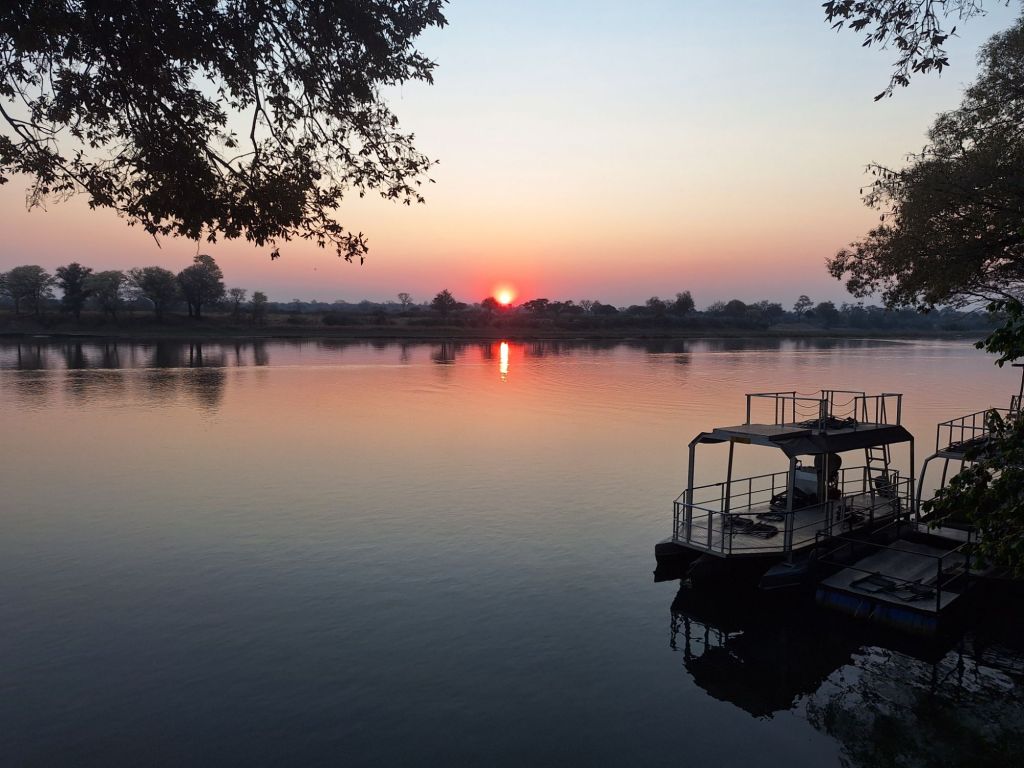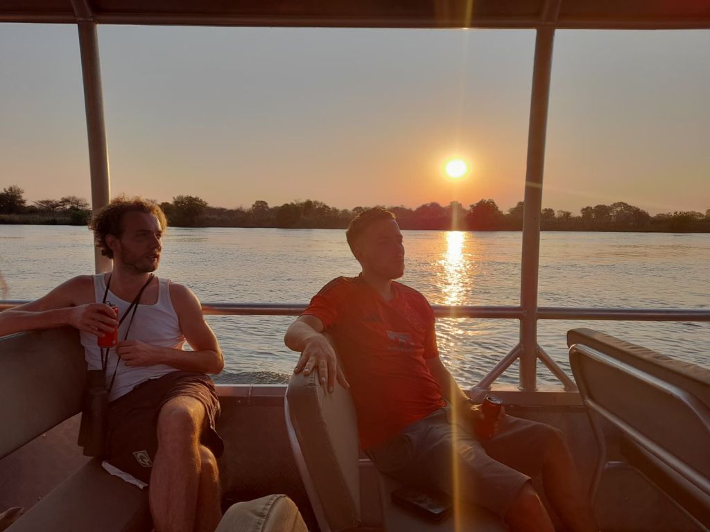 Wiederum im Sonnenuntergang gings per Boot wieder zurück auf die andere Seite des Flusses. Am Ende des Tages saßen wir noch ganz entspannt mit anderen Gästen der Lodge am Lagerfeuer an der Terrasse und philosophierten über unsere Reiseerfahrungen. So viel vorweg: Die Leute staunten nicht schlecht, als wir von unserer Reise erzählten 😉 Auch wenn wir natürlich aktuell auf vier Rädern unterwegs sind und das gar nicht wirklich dazuzählt…