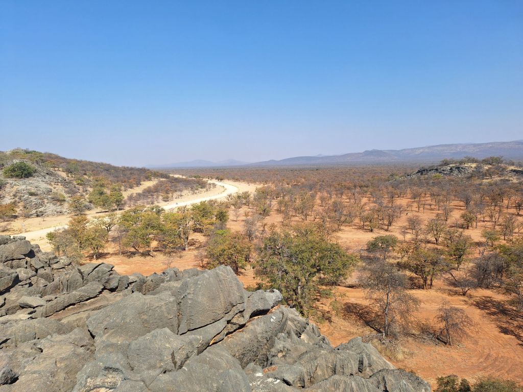 Schnell waren wir jedoch wieder zurück im felsigen Gelände. Die Fahrt zog sich und wir kamen kaum voran. Schließlich, weil wir alle müde waren vom vielen Sitzen im Auto, entschieden wir uns bei einem Abzweig, die Wasserfälle doch auszulassen und wieder in Richtung Süden zu fahren, um den Ort Opuwo als Übernachtungsplatz anzuvisieren.
