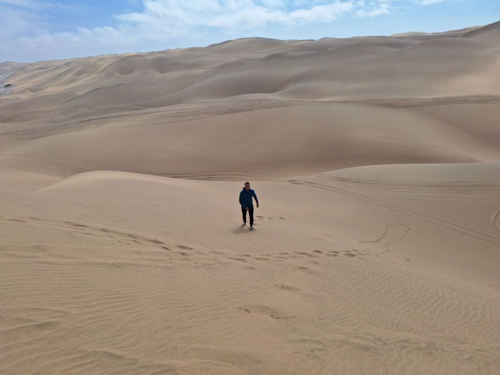 Und auch ein großes Kompliment an den Fahrer. Wie er die fast senkrechten Dünenwände hoch und runter fährt – alle Achtung! Das benötigt extrem viel Erfahrung und Können!