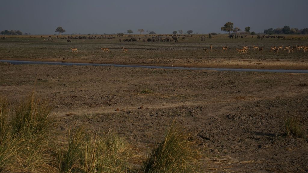 Erst am Nachmittag ging’s dann nochmal auf zu einem Gamedrive auf der anderen Flussseite. Dieser hatte es wieder durchaus in sich. Zuerst sahen wir eine riesige Herde Wasserbüffel, dann zahlreiche Elefanten und sogar ein Dikdik. Die Krönung war schließlich ein großes, offenes Feld, wo sich hunderte Tiere tummelten. Von Springböcken über Elefanten hin zu Zebras und anderen bekannten Wildtieren – hier war alles dabei! Es sah aus wie in einem Disneyfilm, einfach surreal!