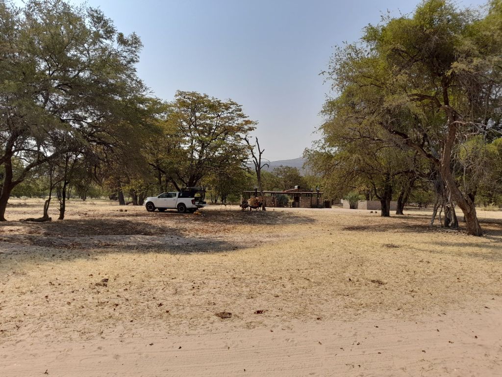 Der Ort war überwältigend: Eine große, leere, weite Fläche am Kunene River mit einigen Bäumen und nur zwei bereits in die Jahre gekommenen Duschen bzw. Toiletten. Wir stellten auf dieser Fläche einfach unseren Mietwagen ab und schliefen dort in bester Stille mitten in der Natur. So macht Campen Spaß. Insbesondere mein Bruder kam nun richtig auf den Geschmack davon, genoss die Ruhe und Einsamkeit dieses Platzes. Ein Radreisender wird er jedoch wahrscheinlich in diesem Leben nicht mehr 😉