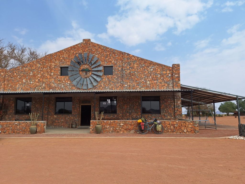 Benni bot mir an, ein Abendessen zu kochen, was ich gerne annahm. Beim Dinner in Form von äußerst leckerem Oryx-Steak mit Salat kam ich mit zwei spanischen Radreisenden in Kontakt, die ebenfalls in der preiswerten Lodge mit Rabatt für Radreisende einkehrten. Sie sind in die andere Richtung unterwegs, fahren von Kapstadt kommend zu den Victoriafällen zwischen Sambia und Simbabwe.