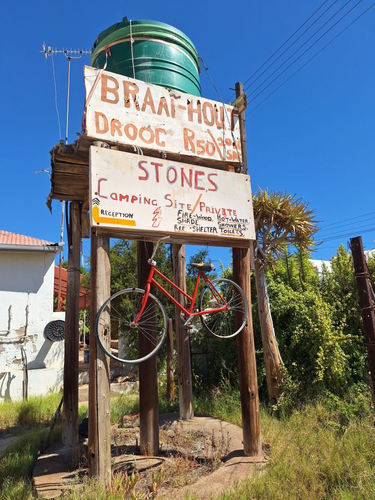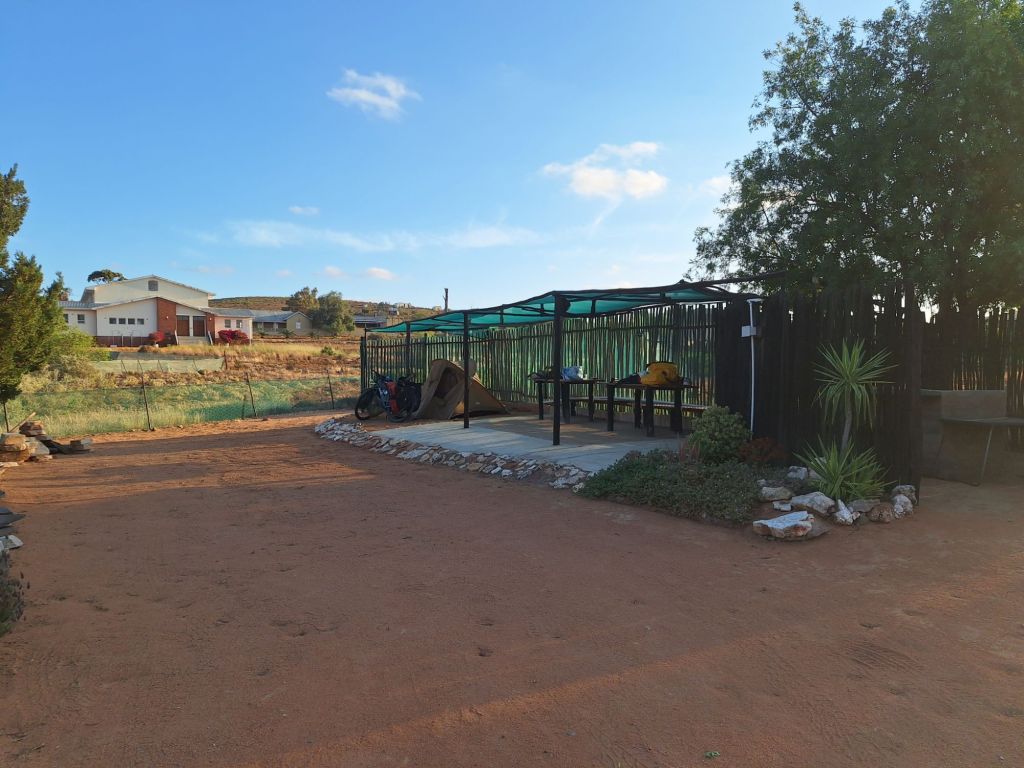 Ich war ganz froh, als nach 10 weiteren hügeligen Kilometern Nuwerus am späten Vormittag vor Ende des guten Windes erreicht war. Auf einem netten Campingplatz in dem Ort baute ich mein Zelt auf, wiederum gottseidank mit Windschutz.
