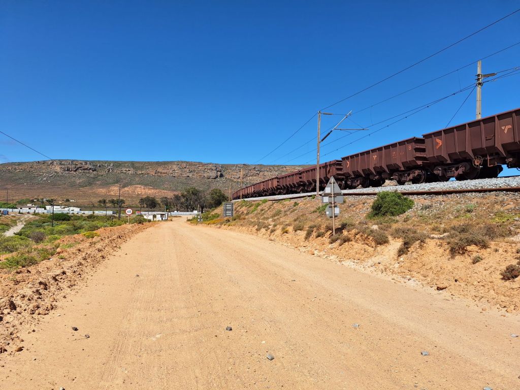 Abgekämpft und erschöpft kam ich dann endlich wieder auf die Gravelstrecke an den Gleisen. Nun war der Weg wieder gut fahrbar. Aufgrund von nur noch etwas über 10 Kilometern bis Lamberts Bay verzichtete ich auf eine Pause und brachte diesen Weg letztlich schnell hinter mich, bevor der Gegenwind zu stark auffrischte.