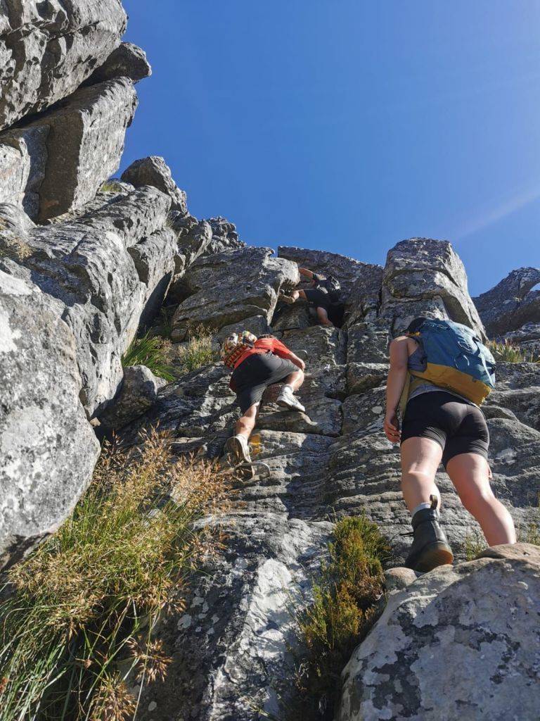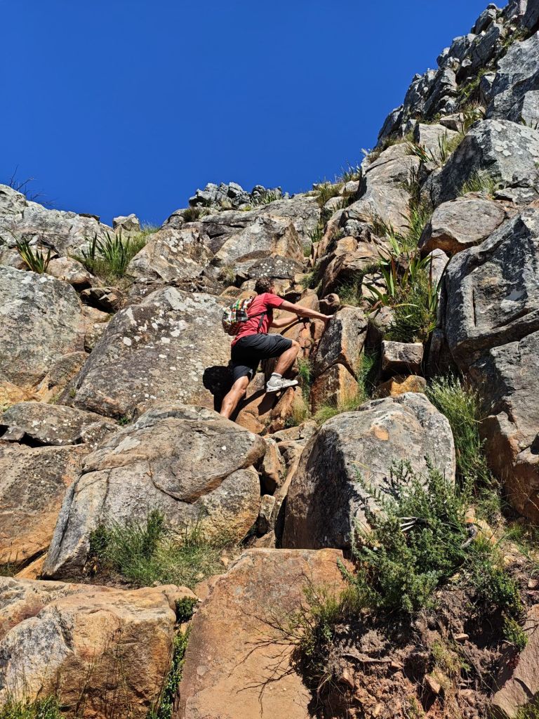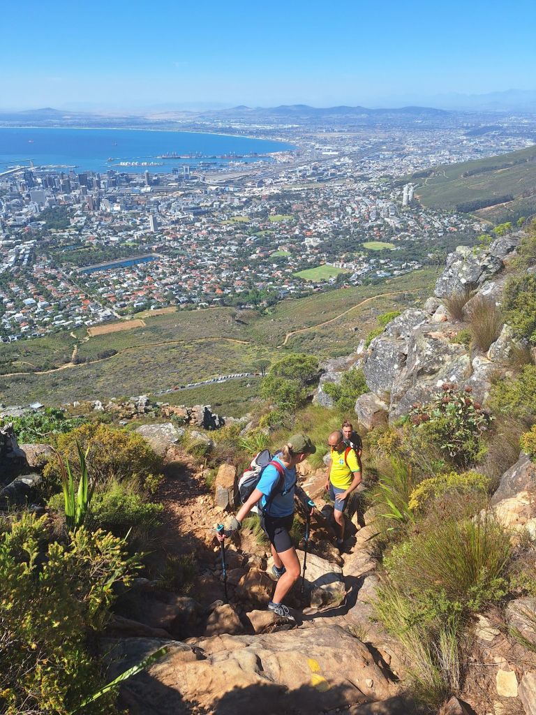 Man muss aber auch betonen: Der Fels war von extrem guter Qualität, zuverlässig und stabil. Man musste sich kaum Sorgen wegen brüchigen Griffen und Tritten machen. Zudem waren die Ausblicke bei den Klettereinlagen auf Lion’s Head und die Stadt jeden Kraftakt wert.