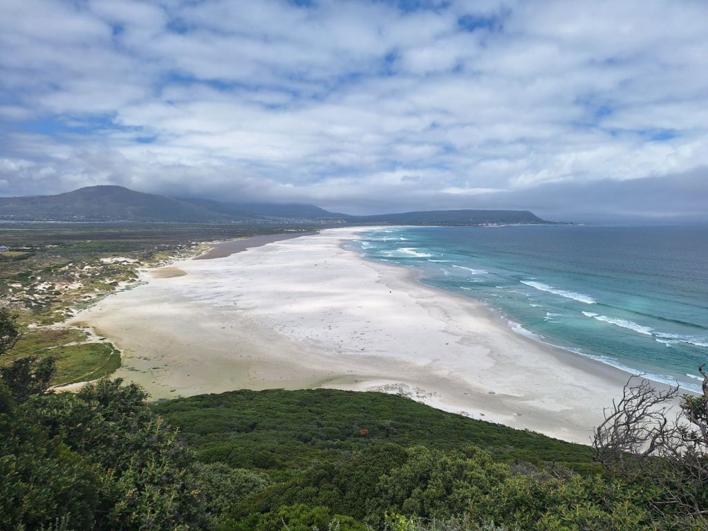 Nicht minder schön wurde es, als man auf der anderen Seite den Chapmans Peak Drive wieder hinunterfuhr zur nächsten Bucht, wo der Noordhoek Beach wartete mit fantastischem Ausblick. Ich musste einmal anhalten und diese Eindrücke aufsaugen: Ein Flair wie auf den Malediven. Der Ausblick auf diesen Strand ist definitiv in den Top 10 der schönsten Strandblicke dieser Tour. Atemberaubend schön.
