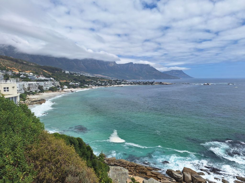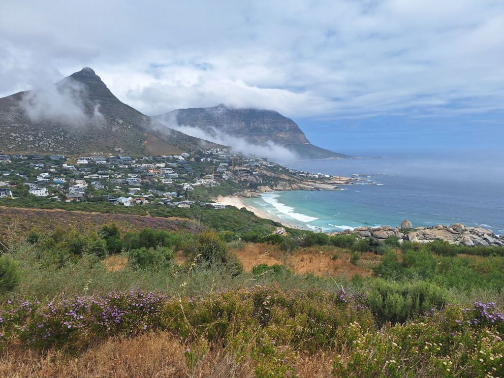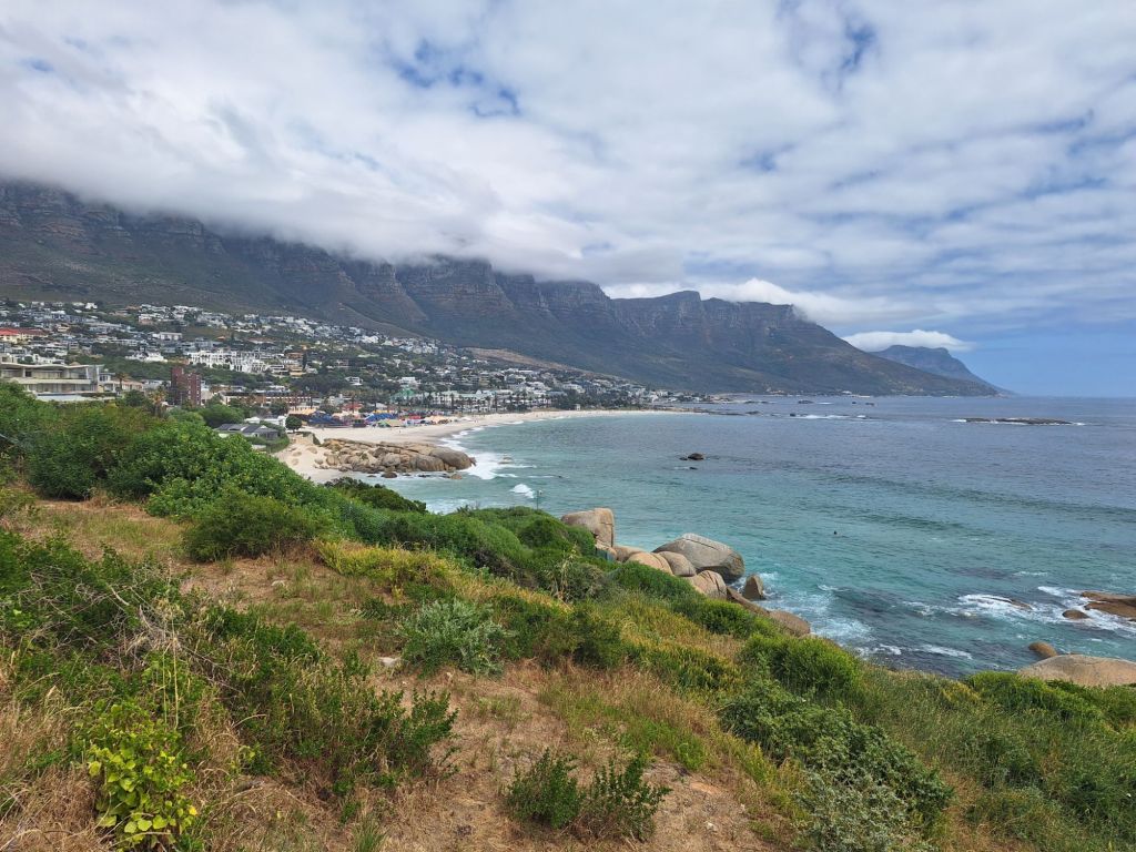 Meine Route sollte mich über die Küstenstraße zum Chapmans Peak Drive führen, so etwas wie einem Must-Do in Kapstadt und Umgebung, wenn man aussichtsreiche Berg-Küsten-Landschaft erleben will. Auf dem Weg hierhin muss man erstmal zwischen Tafelberg und Lion’s Head hindurch in die nächste Bucht, Champs Bay, hinter Kapstadt gelangen.