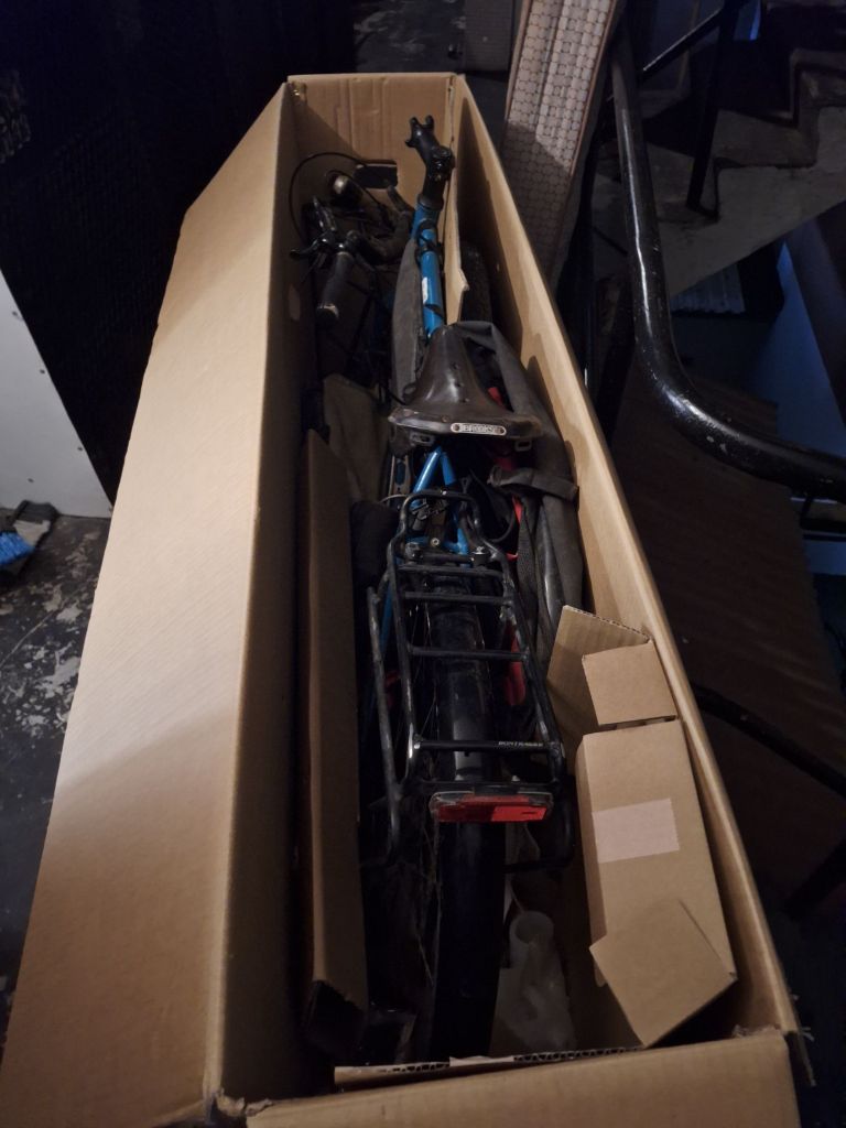 Nach einem faulen Freitag nach all den Erlebnissen der Vortage konnte man sich am Abend motivieren, langsam das Fahrrad auseinanderzuschrauben. Nachdem wir dieses in den Karton manövrierten und noch ein paar sperrige Sachen sowie Kleidung zur Polsterung hinzufügten, gab’s den ersten Schock: Das Ding ist viel zu schwer, weit über den erlaubten 23 Kilogramm. Die Differenz war so hoch, dass man sich wohl damit abfinden musste, dass es sich wohl nur mit dem Fahrrad im Karton ausgehen würde.