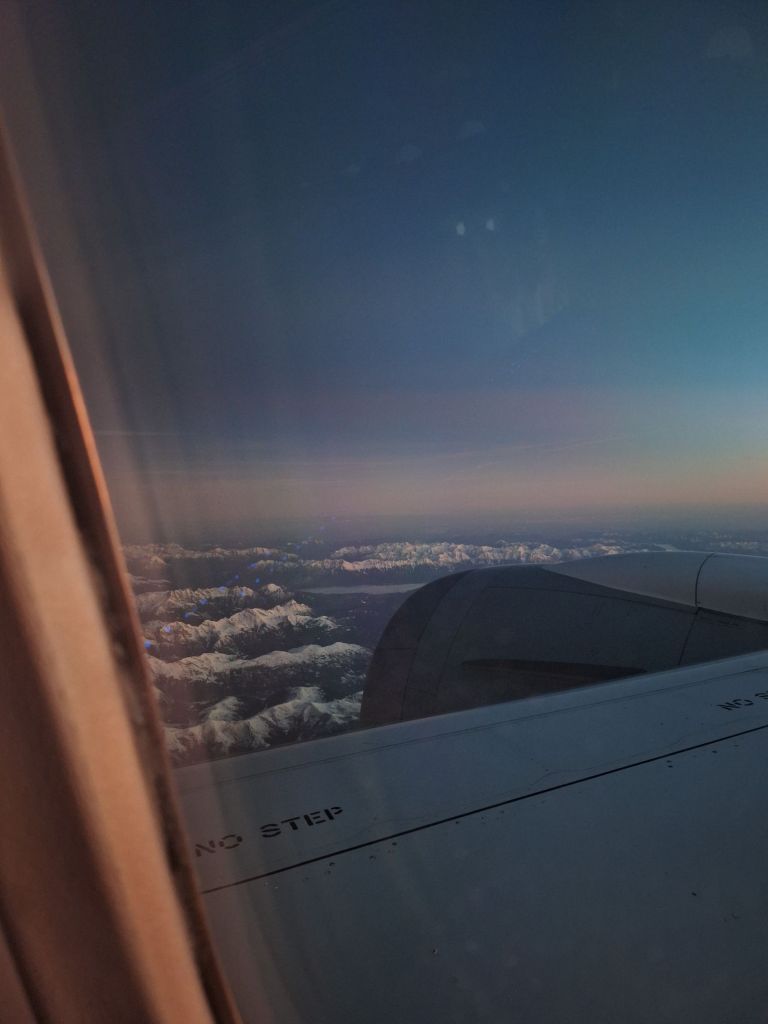Die finale Krönung war jedoch, als die Sonne dann wirklich über den überraschend tief verschneiten Alpen in atemberaubender Art und Weise ihren Weg über den Horizont fand. Noch knapp eine Stunde bis München! Der Blick aus dem Fenster ließ einen dann sogar so manch bekannte Orte entdecken: Da unten, das ist doch der Achensee, inmitten der Berge! Und hier! Das ist die Nordkette und das unter dem Nebel verborgene Inntal! Da, unter der Dunstglocke, ist meine Heimat aus Zeiten vor dieser Reise – Innsbruck!