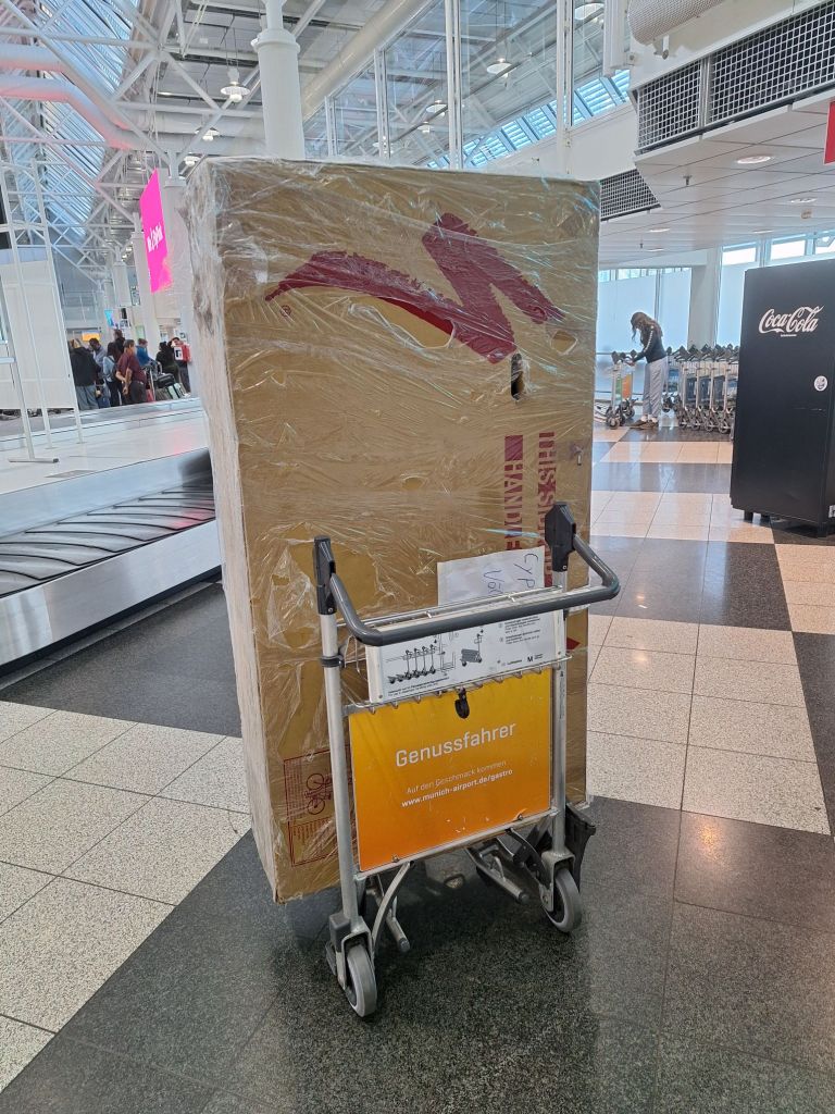 Nun wartete noch eine letzte Herausforderung: Hoffentlich hat es mein Gepäck gut überstanden! Schnell die Passkontrolle passieren und abwarten. Zu meiner großen Überraschung war sogar mein Fahrradkarton als erstes da. Nach gut 10 Minuten Wartezeit fand ich ihn unversehrt an der Sperrgepäckfläche neben den Gepäckbändern. Läuft! Jetzt doch bitte nur noch den Rest heile in Empfang nehmen! Meine Abholung, sie wartet bereits sehnsüchtig auf mich!
