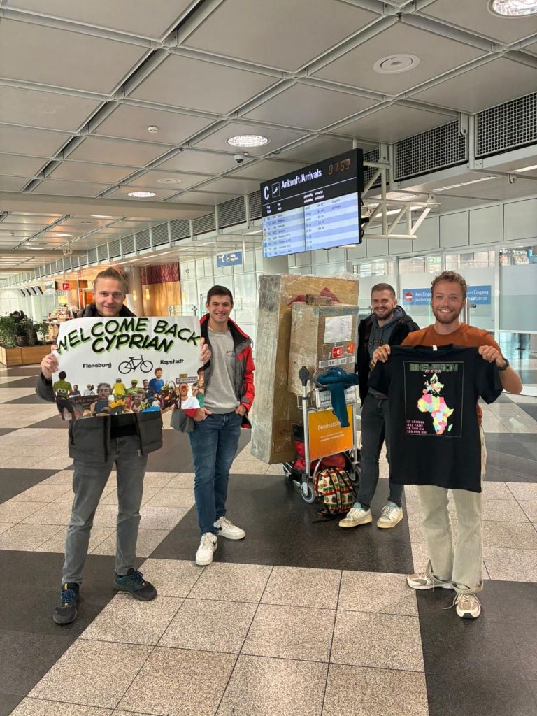 Aber Moment! Nicht so schnell! Die Zollbeamten hatten bei dem großen Karton natürlich auch noch ein Wörtchen mitzureden. „Was haben Sie dann da in dem Karton?“, hielten sie mich auf. Der Beamte musterte mich mit einem strengen Blick und hochgezogener Augenbraue. Ich zögerte kurz: „Ja, also ich hab eine Fahrradreise nach Kapstadt gemacht, und das Fahrrad wollte ich natürlich wieder zurück transportieren. Dementsprechend ein Fahrrad.“ „Und das Fahrrad haben Sie in Deutschland gekauft?“ „Natürlich, ich bin hier vor über einem Jahr losgefahren.“